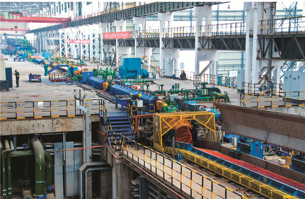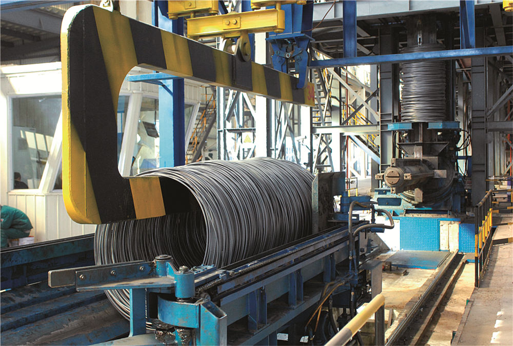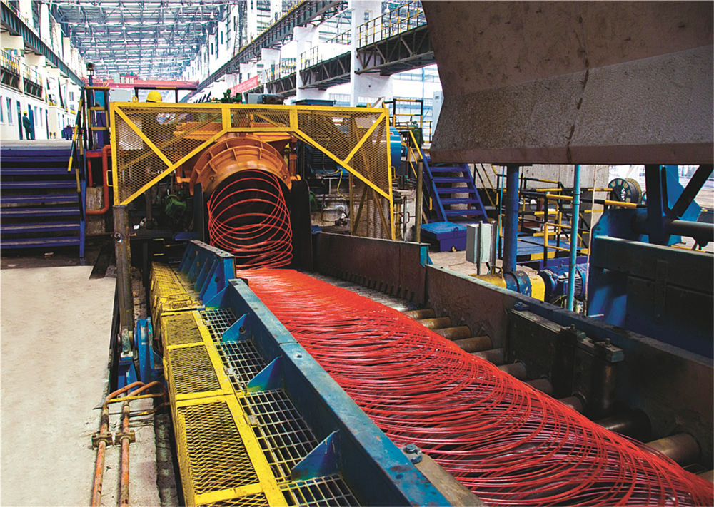 精品高線生產線年產能70萬噸,關鍵技術和高速區核心工藝和設備由美國摩根公司設計和提供,全線自動化和傳動系統由ABB公司負責設計和集成,使產品在質量、性能和成本等方面都具有很強的市場競爭能力。該生產線采用國際上先進適用的生產技術和裝備,最大終軋保證速度為112m/s,采用熱裝熱送工藝及世界上先進的精軋機“8+4”型式等,可實現熱機軋制工藝技術、全線的數字化控制和在線測徑技術、全線的控軋控冷技術、在線HotEye熱眼影像式表面質量檢測技術。生產的線材內部組織均勻,橫斷面上晶粒度差小于1級,通條性能均勻,氧化鐵皮少。產品規格:?5mm~?25mm,主要產品為軸承鋼、彈簧鋼、冷鐓鋼、簾線鋼、易切削鋼等。應用于軸承、汽車、風力發電、橋梁建筑等領域,是一條具有國內一流、國際領先水平的高速線材生產線。